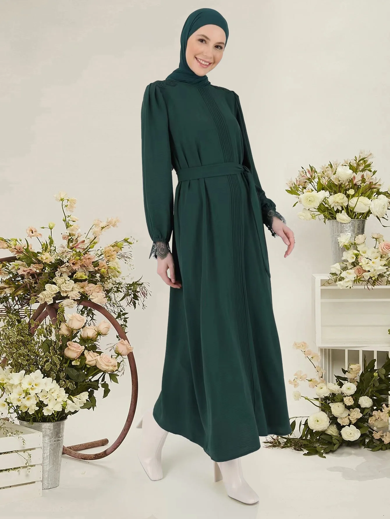 Muslim Women's Lace Stitching Dress Arab Turkey Dress
